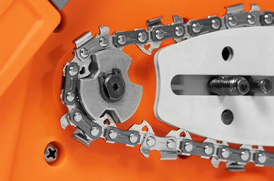 Металлическая ведущая звездочка гарантирует долговечность и надежность работы привода электропилы.