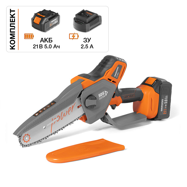 Модель совместима со всеми аккумуляторными инструментами и батареями DAEWOO линейки 21В.