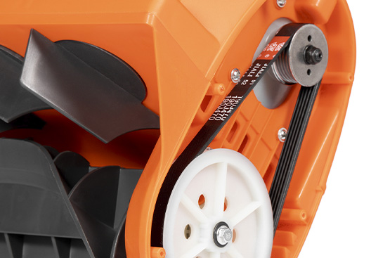 Ременной привод обеспечивает эффективную передачу крутящего момент двигателя на шнек и защищает двигатель в случае заклинивания шнека.
